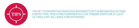 Moving a repetitive action into your subconscious takes time and practice. Don’t give up after just a couple days. If you practice enough your brain and body will remember so you can focus on your goal—breaking targets.